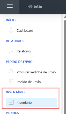Para localizar essas informações faça o login na plataforma Estoca > Acesse o menu lateral esquerdo > Inventário: