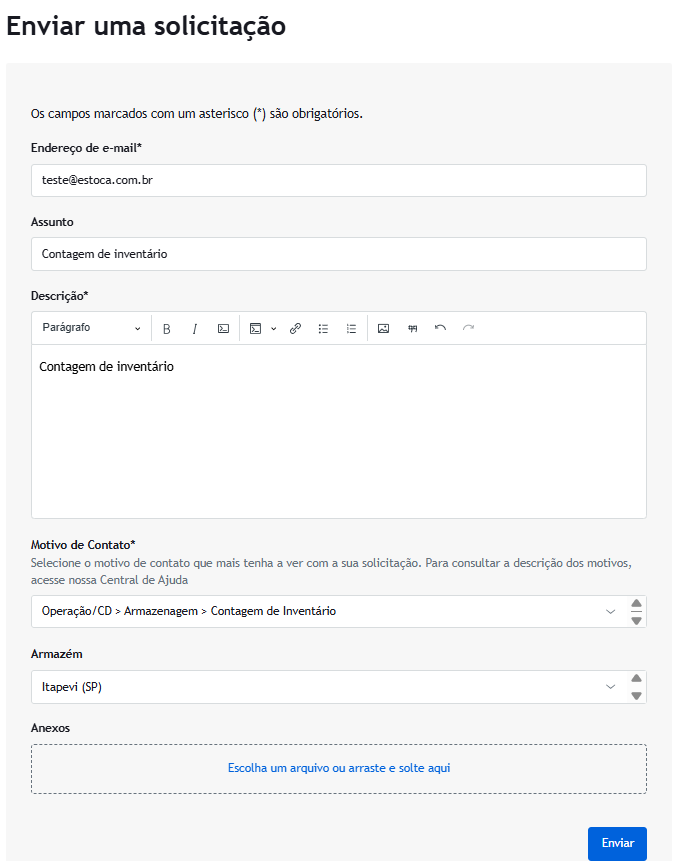 Mas se ainda assim vocês precisarem de uma contagem seja de um produto específico ou de insumo, entre em contato com o nosso time de atendimento através do Formulário Estoca, conforme abaixo: