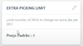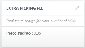 Extra Picking Fee: Definição do valor extra processado. Nesse caso, R$0,35 |