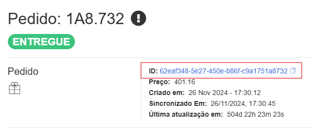 📌Para abertura de chamados de pedido de entrega, será necessário informar o ID do pedido, exemplo: 0oo00o0o-0000-0o00-0000-00000o0o0000