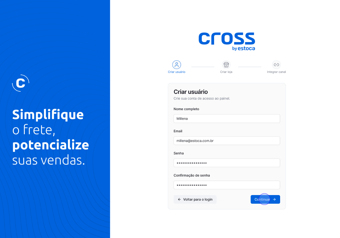 Caso NÃO seja cliente Estoca Fullfilment, crie um novo usuário.