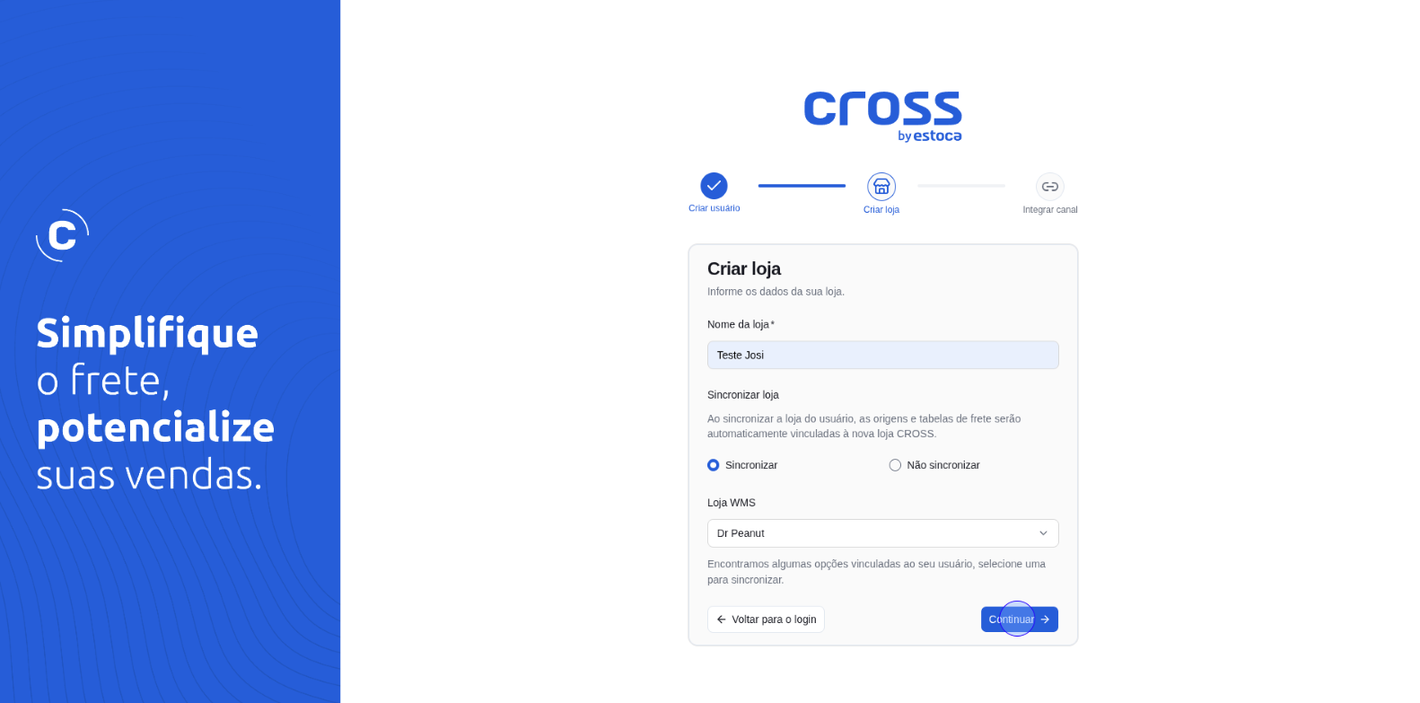 Se você é cliente Estoca, pode sincronizar com uma loja do WMS para vincular automaticamente origens e tabelas de frete: