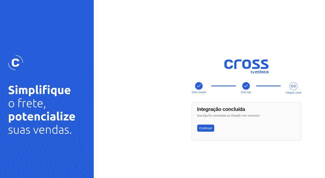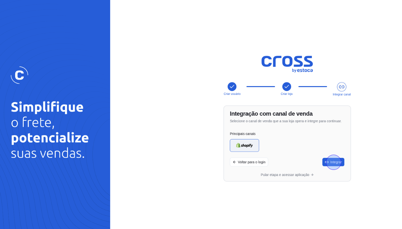 ⚠️Atenção: Cada loja Shopify só pode ser conectada a um único seller no Cross. Se a loja já estiver vinculada a outra conta, você verá um erro.
