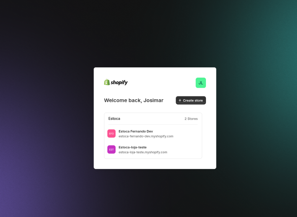 Após criar a loja, você precisa conectar o canal de venda onde seus clientes compram. A plataforma suporta um canal: Shopify.