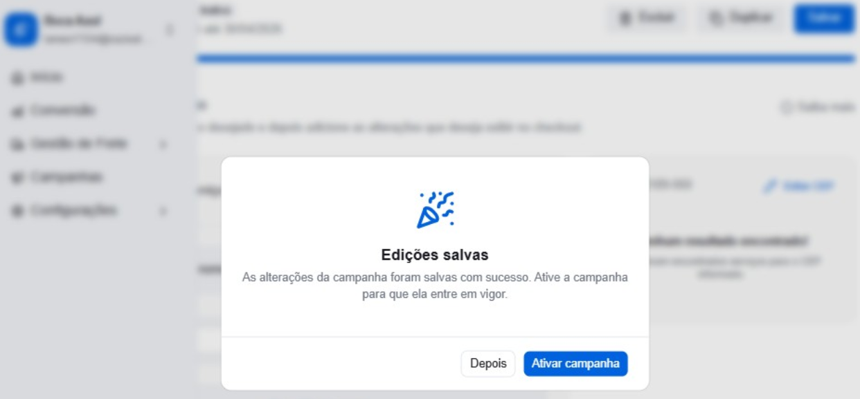 Campanha configurada! Para ativá-la basta clicar em “Ativar”.